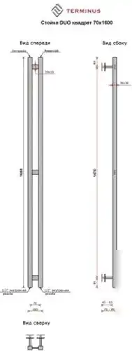 Полотенцесушитель TERMINUS Стойка Duo Квадрат 70х1600 (золото)
