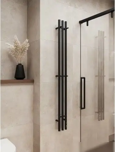 Полотенцесушитель TERMINUS Стойка Tres Круг 1600 (черный) — это электроустройство для обогрева и сушения полотенец. Он выполнен из нержавеющей стали, что обеспечивает долговечность и устойчивость к влаге. Устройство оснащено тремя ребрами, которые надежно держат полотенца, и имеет стандартный дизайн с простым управлением. Благодаря встроенному терморегулятору и таймеру вы легко поддерживаете комфортную температуру и задаете время работы. Модель подключается скрытым способом к электросети, что обеспечивает аккуратный внешний вид. Размеры: длина 160 см, ширина 15.6 см, глубина 10.7 см, вес всего 5.05 кг. Посадочное расстояние между ребрами составляет 70 мм, что удобно для сушки полотенец. Комплектация включает телескопические крепления и кабель, что делает монтаж простым и быстрым.