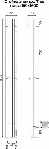 Полотенцесушитель TERMINUS Стойка Tres Проф 1600 (черный)