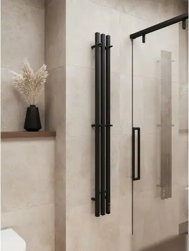электрический, вертикальный, нержавеющая сталь, подключение нижнее, таймер, терморегулятор, 160x15 см, цвет: черный