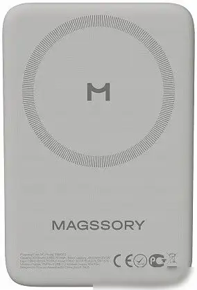 Внешний аккумулятор Magssory Core 5K выполнен в титановом цвете и имеет ёмкость 5000 мА·ч, что позволяет быстро зарядить смартфоны, планшеты, наушники или портативные колонки. Он оснащён одним USB Type-C разъёмом с поддержкой входного и выходного напряжения 5V, 9V и 12V, обеспечивая мощность до 15 Вт и быстрый заряд благодаря технологии сквозной зарядки. Специальная функция поддержки MagSafe и крепления на смартфон делает его удобным для использования совместно с айфонами и другими устройствами с магнитной системой. Зарядка осуществляется через беспроводную технологию Qi 2 с мощностью до 15 Вт, что удобно для совместимых гаджетов без проводов. Аккумулятор имеет компактные размеры: 110х69х10 мм и весит всего 189 г, что делает его удобным для переноски. Индикация заряда светодиодами помогает следить за уровнем энергии. Устройство не защищено от пыли, влаги и ударов, поэтому его следует бережно хранить. В комплект входит USB Type-C кабель для зарядки и зарядки других устройств.