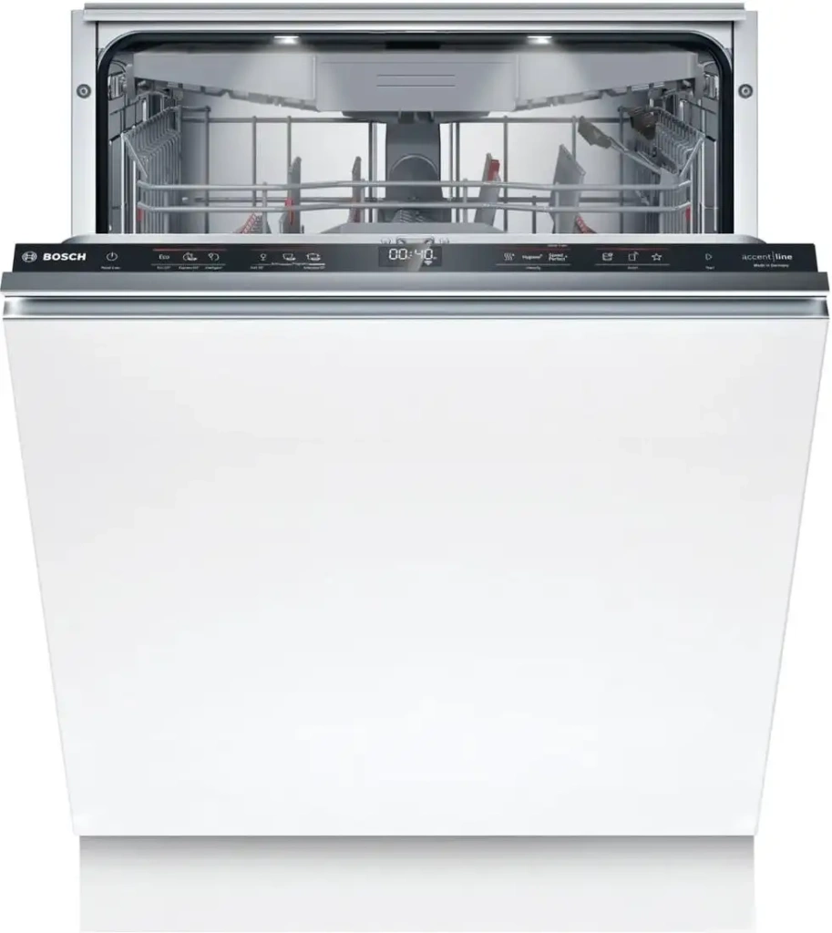 Встраиваемая посудомоечная машина Bosch Serie 6 SMD6ZC804E производства Германии станет надежным помощником на кухне. Она моет до 14 комплектов посуды за один цикл и оснащена системой теплообмена и зеолитов для эффективной сушки. Машина работает с минимальным уровнем шума — всего 40 дБ, что создает комфортную атмосферу. Управление сенсорное, есть цифровая индикация и таймер отложенного старта до 24 часов. В конструкции предусмотрены регулируемая по высоте верхняя корзина и складывающиеся держатели, что повышает удобство загрузки. Машина предлагает семь программ, включая ежедневную, экономичную и интенсивную мойку, а также дополнительные опции для ускорения или усиления процесса. Благодаря инверторной технологии она потребляет всего 0.65 кВт·ч энергии за цикл и расходует 9 литров воды. Различные индикаторы и блокировка от детей обеспечивают безопасность и простоту использования. Устройство обладает защитой от протечек и внутренним освещением, делая эксплуатацию максимально удобной.