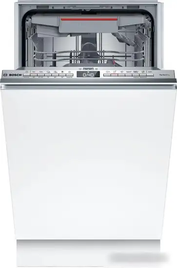 Встраиваемая посудомоечная машина Bosch Serie 6 SPV6YMX01E хорошо справляется с мойкой до 10 комплектов посуды одновременно. Машина оснащена системой от открывания дверцы для более эффективной сушки посуды с помощью теплообменника и технологии Zeolite. Управление происходит через электронный дисплей, легко настраиваемые программы включают ежедневную, экономичную, интенсивную и ночную мойку, а также дополнительные опции для сокращения времени и усиления сушки. Она работает тихо — уровень шума всего 43 дБ, что делает использование комфортным. Внутренний дизайн предусматривает регулируемую по высоте верхнюю корзину и складывающиеся держатели в нижней корзине для большего удобства. Машина обладает функциями защиты от протечек и датчиком чистоты воды для качественной мойки. Есть индикаторы уровня соли и ополаскивателя, а также таймер отсрочки запуска. Дополнительную эффективность обеспечивает инверторная технология и возможность программирования с помощью пользовательских программ.