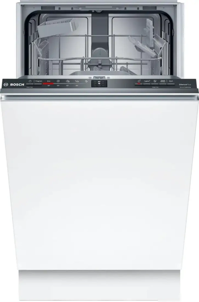 Встраиваемая посудомоечная машина Bosch SPV2IKX54Q рассчитана на загрузку до 9 комплектов посуды. Она легко устанавливается в вашу кухню и оснащена защитой от протечек, что повышает безопасность. Машина управляется с помощью электронных кнопок и имеет светодиодную индикацию, показывающую статус работы. В ней есть 5 программ мойки, включая экономичную, ежедневную и интенсивную — каждая позволяет выбрать подходящий режим для разных типов посуды. Встроенные функции — это ускорение процесса, усиление мойки и задержка старта до 9 часов, что удобно для планирования работы. Машина эффективно сушит посуду с помощью стандартной конденсационной системы, а класс сушки — A. Имеются специальные держатели для бокалов и складывающиеся полки для удобства. Размеры позволяют встроить её в нишу высотой 81,5–87,5 см, шириной 45 см и глубиной 55 см. Она очень легкая для своей категории и работает тихо, обеспечивая чистую посуду без лишних хлопот.