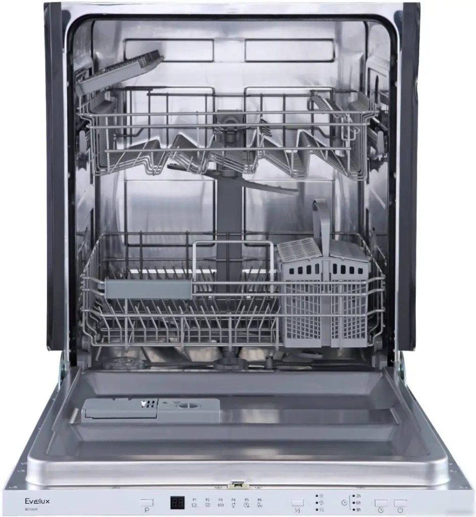 Встраиваемая посудомоечная машина Evelux BD 6004 помогает быстро и качественно мыть посуду. Она вмещает до 13 комплектов посуды и работает очень тихо — уровень шума составляет всего 55 дБ. Машина обладает шестью программами, включая ежедневную, экономичную, деликатную и интенсивную мойку, что позволяет выбрать подходящий режим для любого вида посуды. Встроенная регулируемая верхняя корзина облегчает загрузку самых больших предметов. Благодаря электронному управлению и светодиодной индикации проще следить за текущим статусом устройства. Машина расходует 0.9 кВт·ч электроэнергии и 11 литров воды за цикл, что делает её энергоэффективной. Есть таймер отсрочки старта до 9 часов, он позволяет запланировать мойку в удобное время. Дополнительные опции включают половинную загрузку, что помогает экономить воду и электроэнергию. В комплект входит корзина для столовых приборов, упрощая загрузку и сортировку посуды. Эта модель подходит для встраивания в кухонный гарнитур, занимая минимальное пространство.