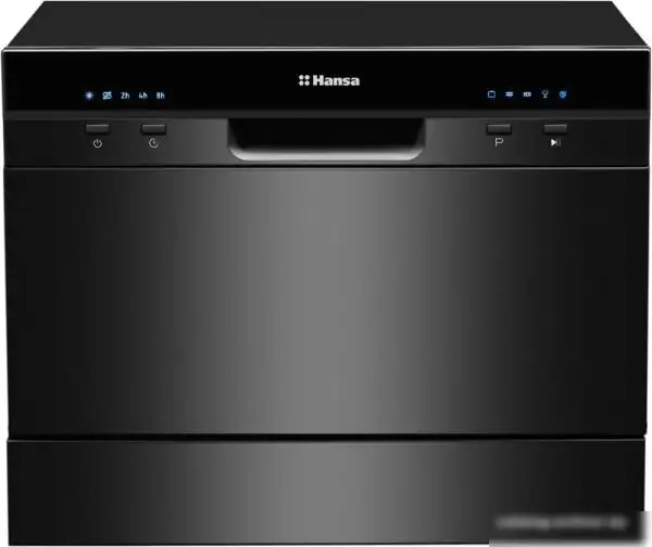 загрузка на 6 комплектов посуды, электронное управление, 5 программ, черный цвет, сушка: конденсационная, индикация на полу: нет