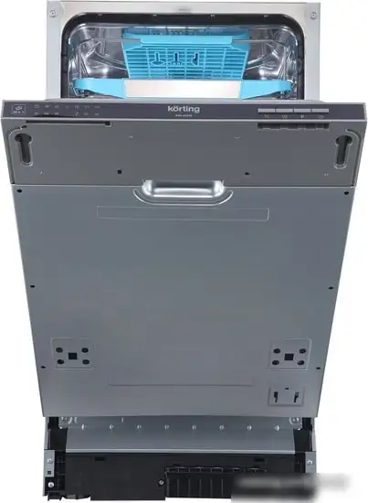 Посудомоечная машина Korting KDI 45340 — это встраиваемый прибор, который легко разместить в вашей кухне. Она способна поместить до 10 комплектов посуды за один цикл, что делает её удобной для семьи. Машина работает очень тихо — уровень шума всего 49 дБ, поэтому не будет мешать во время работы. Есть шесть программ мойки, включая быстрый режим за 30 минут, а также бережные и интенсивные режимы для разных видов посуды. Машина оснащена системами защиты от протечек и показывает уровень соли и ополаскивателя, чтобы всегда было всё готово к работе. Управление электронное и простое, есть таймер с отсрочкой до 9 часов, чтобы запланировать мойку по удобному времени.