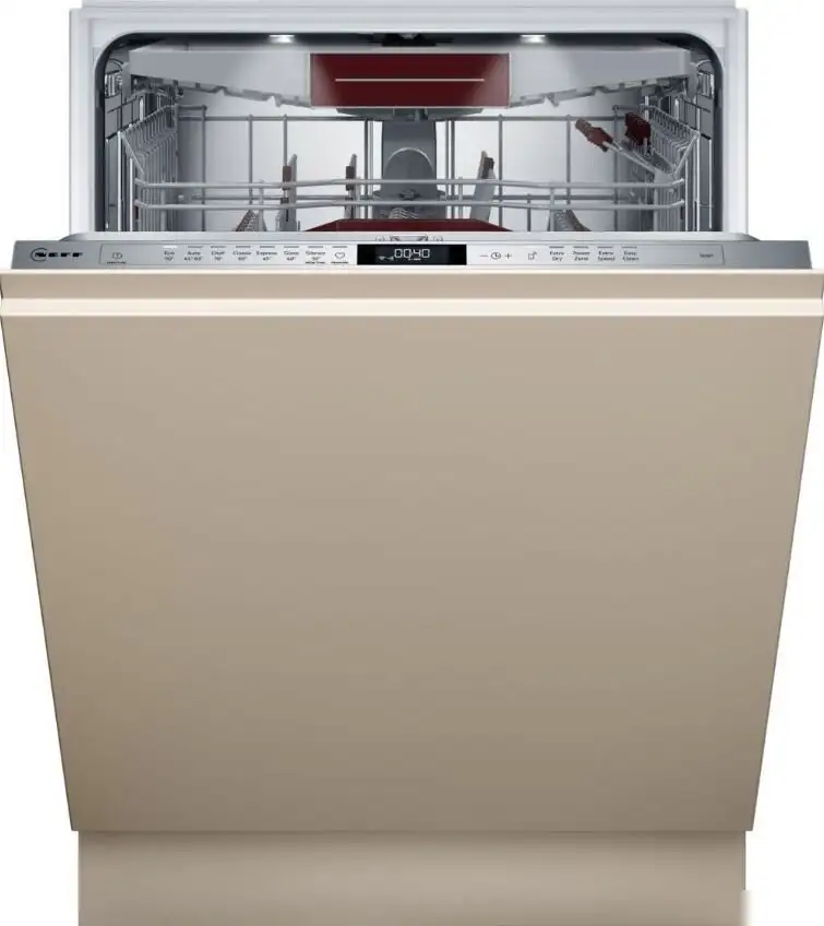 Встраиваемая посудомоечная машина NEFF S257ECX14E изготавливается в Германии и подходит для загрузки до 14 комплектов посуды. Она оснащена системой с теплообменником, которая дополнительно способствует сушке посуды, оставаясь тихой — уровень шума всего 42 дБ. Машина имеет электронное управление с цифровой индикацией, таймер отложенного старта и световое освещение внутри, что облегчает работу. Она предлагает восемь программ мойки, включая ежедневную, экономичную, деликатную и интенсивную, чтобы легко выбрать подходящий режим. Машина защищена от протечек и позволяет регулировать высоту верхней корзины для удобства. В нижней корзине есть складывающиеся держатели для удобства загрузки. За счет инверторной технологии устройство работает эффективно, расходуя всего 0,54 кВт·ч на цикл и 9 литров воды. Также предусмотрены дополнительные функции: сокращение времени, дополнительная сушка, усиление мойки снизу и программа самоочистки для поддержания гигиеничности.