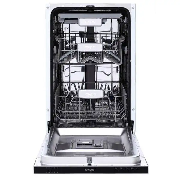 Посудомоечная машина Akpo ZMA45 Series 6 Autoopen — это встроенная модель с функцией автоматического открытия двери для более качественной сушки посуды. Она может вместить до 9 комплектов посуды и работает очень тихо, его уровень шума составляет всего 47 дБ. Машина имеет 6 программ, включая ежедневную, экономичную, деликатную и быструю мойку, что позволяет подобрать подходящий режим для любой ситуации. Среди особенностей — электронное управление, индикация на полу о статусе программы, а также таймер отсрочки старта до 24 часов. В устройстве есть датчик чистоты воды и индикаторы уровня соли и ополаскивателя, что помогает поддерживать прибор в рабочем состоянии. Также модель оснащена защитой от протечек и внутренним освещением для удобства пользования. Эта модель сочетает хорошую энергоэффективность и удобство в использовании.