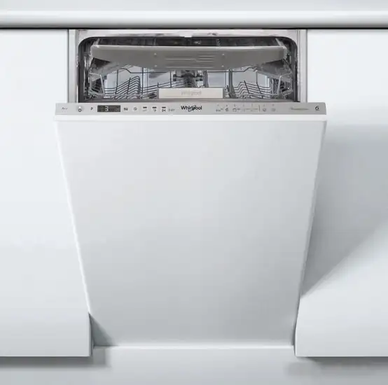 Посудомоечная машина Whirlpool WSIO 3O23 PFE X встраиваемая модель, которая легко поместится в вашу кухню. Она рассчитана на загрузку до 10 комплектов посуды и работает очень тихо — всего 43 дБ. Машина использует конденсационную сушку, а её класс энергии — A++, что помогает экономить электроэнергию и воду. Управление осуществляется через электронную панель с цифровой индикацией и таймером отсрочки до 12 часов. Машина предлагает 7 программ, включая быструю, деликатную, интенсивную и экономичную мойку, что позволяет выбрать подходящий режим для любой посуды. Защита от протечек обеспечивает безопасность использования. Внутри есть датчик чистоты воды и дополнительный третий коробы, что повышает эффективность мойки и удобство.