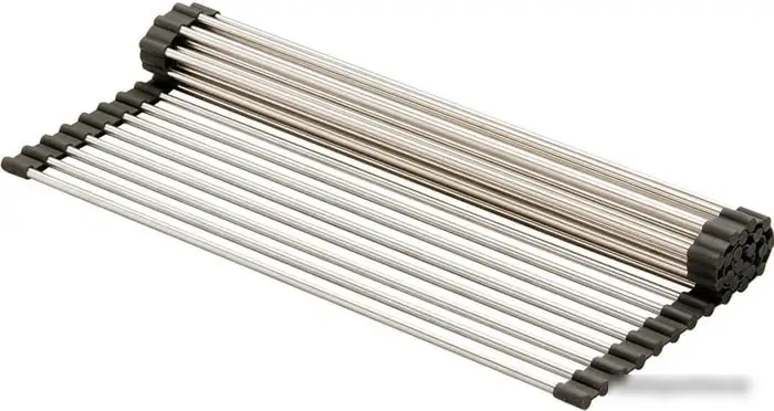 Коврик для сушки Franke Roll-up 112.0256.867 помогает быстро и удобно высушить посуду после мытья. Он выполнен из металла и пластика, что обеспечивает прочность и долговечность. Цвет нержавеющая сталь хорошо вписывается в любой интерьер кухни. Размеры коврика — 41 см в длину и 29,8 см в глубину, что позволяет разместить много посуды одновременно. Коврик удобно разложить и зафиксировать в нужной форме. Он легко складывается при хранении, что экономит место. Такой коврик не только служит для сушки, но и предотвращает скольжение посуды. Легко чистится и устойчив к влажности. Он поможет быстро убрать воду и подготовить посуду к использованию или хранению.
