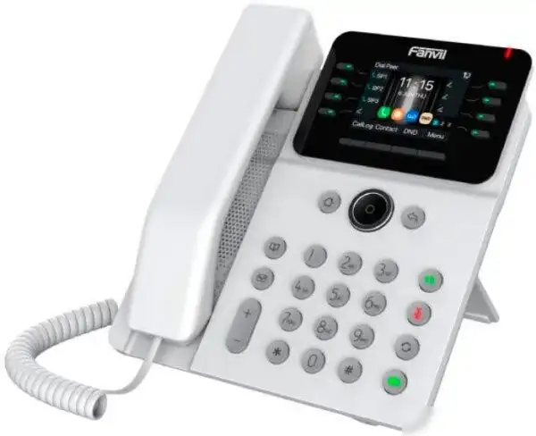 IP-телефон Fanvil V62G белого цвета удобно используется для работы с несколькими линиями, так как поддерживает до 6 одновременных звонков. На ярком 2.8-дюймовом ЖК-экране отображаются номера и другая важная информация. Телефон имеет вместительную книгу контактов на 1000 номеров и журнал вызовов с историей до 500 номеров входящих и исходящих звонков. Он легко подключается через Ethernet и поддерживает питание по PoE, что упрощает установку. Телефон позволяет регулировать громкость и подключать гарнитуру для удобства. Благодаря функции конференц-связи и дуплексному спикерфону, пользоваться телефоном можно в группе или для громкой связи. Телефон удобно монтировать на стену, что подходит для офисных условий. Он оснащён индикатором вызова и кнопками для быстрого набора, удержания и отключения микрофона. Размеры устройства компактные, а дизайн строгий и аккуратный.