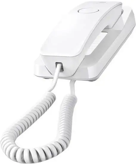 Проводной телефон Gigaset DESK 200 белого цвета удобен и прост в использовании. Он подключается к телефонной линии и имеет функцию ускоренного набора на 10 номеров, что позволяет быстро звонить. Телефон оснащен индикатором вызова и регулируемой громкостью звука, чтобы вы всегда могли услышать звонок. Благодаря возможности монтажа на стену, его легко разместить в любом помещении. На трубке есть кнопка набора, а также кнопка для повторного вызова, что ускоряет соединение. Телефон не имеет встроенного автоответчика и дисплея, но подходит для использования в офисе или дома. В комплект входит кабель для подключения трубки и адаптер TAE. Габариты устройства: ширина 80 мм, высота 208 мм, глубина 57 мм, а вес — всего 352 грамма, что делает его удобным для ежедневного использования.
