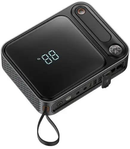Портативное пусковое устройство Baseus Super Energy Ultra Jump Starter обеспечивает быстрый запуск автомобиля благодаря максимальному пусковому току до 3000 А. Встроенный аккумулятор с ёмкостью 26 800 мА·ч позволяет запускать машины независимо от сети. Устройство поддерживает работу с напряжениями 12 V и 220 V, что расширяет его применение. Оно оснащено двумя USB портами Type A и одним Type C для зарядки смартфонов и других гаджетов. Есть специальный выход 12 В для подключается дополнительного оборудования. Встроенный фонарик помогает пользоваться устройством в темноте. Портативный размер — 134x172x49 мм, вес — 1,2 кг, что делает его удобным для переноски. Устройство быстро и стабильно запускает двигатель, а также заряжает гаджеты в дороге. Его можно использовать как запасной источник энергии во время путешествий.