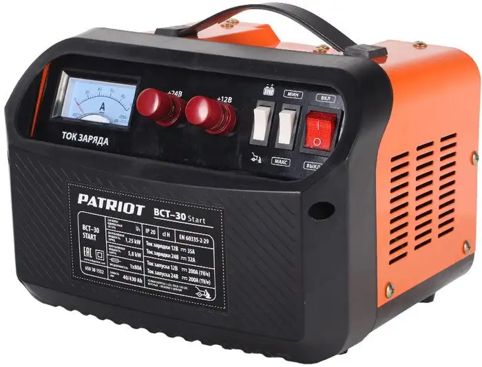 Пуско-зарядное устройство Patriot BCT-30 Start поможет вам запустить автомобиль или зарядить аккумулятор. Оно не имеет встроенного аккумулятора и работает от сети 220 В. Устройство подходит для аккумуляторов напряжением 12 В и 24 В, а его ток зарядки составляет 35 А. Максимальный пусковой ток достигает 200 А, что обеспечивает быстрый запуск двигателя. Длина провода 1,8 м облегчает подключение и использование в разных условиях. Устройство выдерживает температуру от -30 до +60 градусов, что делает его пригодным для работы в любой погоде. В комплектацию входят зарядное устройство, запасные предохранители, кабель с клеммой и инструкция. Оно компактное и удобное в использовании, с надежной защитой и простотой подключения. Это устройство — полезный помощник для аварийных случаев и обслуживания автомобиля.