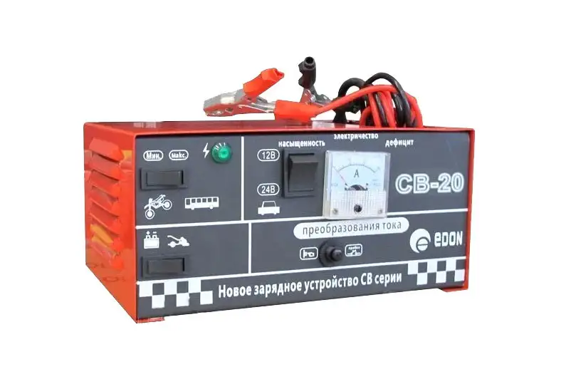 Зарядное устройство Edon CB-20 предназначено для зарядки батарей емкостью от 40 до 200 Ah. Оно работает от электросети с напряжением 220 V и подходит для батарей на 12 V и 24 V. Устройство имеет мощность до 100 Вт и регулируемый ток зарядки до 20 А, что обеспечивает быструю и безопасную зарядку. Красный корпус делает его заметным и легко узнаваемым. Габариты устройства позволяют удобно разместить его в любом месте. Вес всего 4,7 кг делает его достаточно переносным для использования в разных условиях.