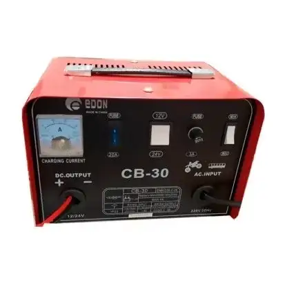 Зарядное устройство Edon CB-30 предназначено для зарядки батарей емкостью от 20 до 200 Ah. Оно работает от электросети с напряжением 220 V и подходит для батарей с номинальным напряжением 12 V и 24 V. Устройство обеспечивает ток зарядки 9 А, что позволяет быстро пополнять заряд аккумуляторов. Размеры зарядного — это 270 мм в длину, 170 мм в ширину и 128 мм в высоту, а вес составляет 5.55 кг. Оно не имеет встроенного аккумулятора, USB-выходов или дополнительных функций, таких как компрессор или фонарик. Таким образом, Edon CB-30 — простое и надежное устройство для восстановления заряда аккумуляторов.