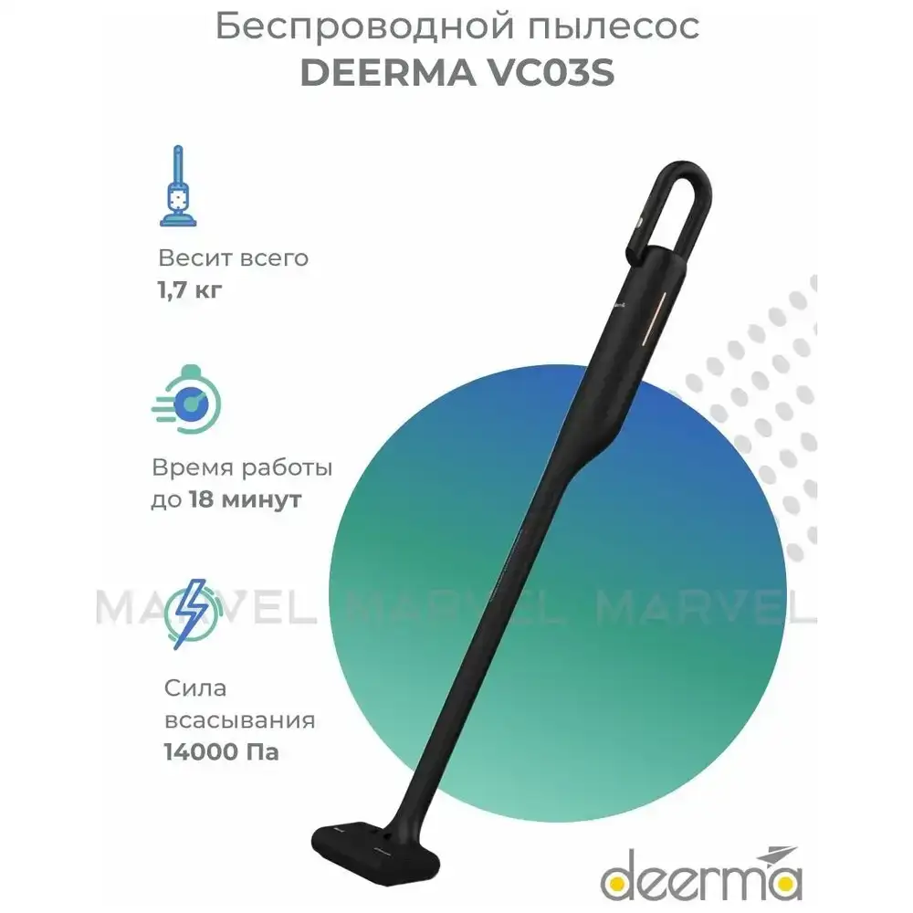 Пылесос Deerma VC03S — это удобное устройство для уборки дома. Он работает от аккумулятора с большой емкостью, что позволяет ему работать до 18 минут без подзарядки. Модель выполнена в черном цвете и имеет легкую конструкцию весом всего 1,48 кг, что облегчает использование. Пылесос оснащен контейнером для пыли объемом 0,6 литра и системой тонкой фильтрации, которая помогает очищать воздух от мелких частиц. В комплект входят насадки для пола, мебели и щелевая — для более качественной и точной уборки. Этот вертикальный 2-в-1 пылесос легко трансформируется и подходит для разных типов поверхностей. Он не шумит слишком громко, уровень шума — 78 дБ. Этот пылесос — хорошее решение для быстрой и удобной уборки в доме.