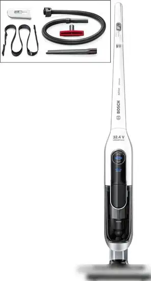 Пылесос Bosch BBH73260K — это удобное устройство для уборки дома. Он работает автоматически и регулирует мощность, чтобы эффективно очищать разные поверхности. Внутри есть контейнер для пыли объемом 0,9 литров и фильтр тонкой очистки, который задерживает мелкие частички. Пылесос оснащен щетками для пола и ковра, а также щелевая насадка и насадка для мягкой мебели, помогает тщательно почистить труднодоступные места. Он работает на аккумуляторе типа Li-ion с напряжением 32.4 В, обеспечивая до одного часа работы без подзарядки. Для удобства зарядки требуется примерно 6 часов. Устройство легко управляется благодаря регулировке мощности на корпусе. Его размеры небольшие, а вес — всего 3,7 кг, что облегчает его использование и хранение.