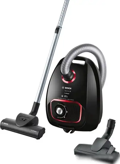Пылесос Bosch BGBS4POW1 — это классическая модель с мешком и мощностью 850 Вт, которая легко справляется с уборкой. Он имеет трубку телескопического типа, что делает его удобным для использования и позволяет настроить длину под себя. Радиус действия — 10 метров, поэтому вам не придется часто менять розетки при уборке. Автоматическое сматывание шнура экономит время и сохраняет порядок. Объем пылесборника составляет 4 литра, что позволяет реже его опустошать. Уровень шума не превышает 76 дБ, поэтому работа пылесоса не мешает остальным в доме. В устройстве установлен фильтр тонкой очистки с системой очистки, а также применена технология фильтрации НЕРА, которая задерживает пыль и аллергены. В комплект входят насадки для ковра, пола, мебели и щелевая насадка, что расширяет возможности уборки. Он оснащен мягкими колесами для бережного перемещения и легко подключается к электросети. Размеры пылесоса: ширина — 26.5 см, глубина — 29.5 см, высота — 41 см, вес — 6 кг.