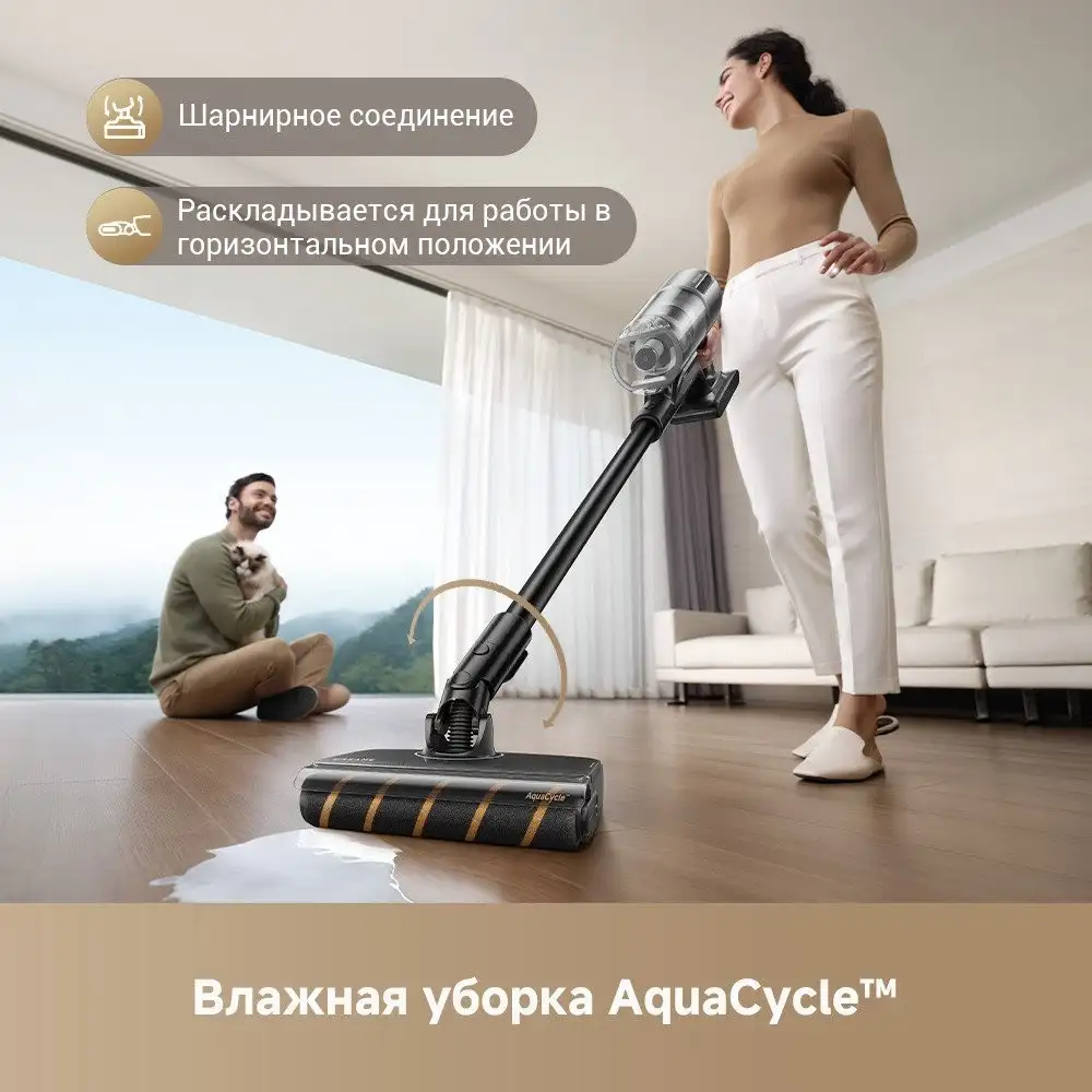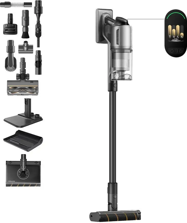 Пылесос Dreame Z30 Aqua Cycle — это мощное и удобное устройство для дома. Он работает на аккумуляторе и легко перемещается благодаря весу всего 2,2 кг. Вертикальный дизайн позволяет использовать его как с влажной уборкой, так и для сухой. Мощность всасывания 310 АВт обеспечивает эффективную уборку, а разрежение 28 кПа помогает собирать пыль и шерсть домашних животных. Встроенная подсветка рабочей зоны и дисплей делают уборку проще и приятнее. Регулировка мощности осуществляется прямо на ручке для комфортного использования. В комплект входят насадки для твердых покрытий, ковра, мебели, шерсти животных, мини-электрощетка, швабра и гибкий шланг, что расширяет возможности уборки. Емкость пылесборника составляет 0,6 л, а аккумулятора хватает на 1,5 часа работы. Быстрая зарядка — всего 4 часа, а фильтр HEPA H14 помогает очищать воздух в доме.