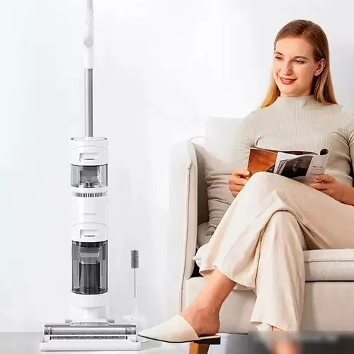 Пылесос Dreame H11 — это вертикальный 2-в-1 моющий прибор, который удобно использовать как для сухой, так и для влажной уборки. Он работает от аккумулятора с мощностью 170 Вт и обеспечивает до 30 минут работы без подзарядки. В устройстве есть контейнер для пыли объемом 0,6 л и резервуар для воды на 0,9 л, что позволяет убирать различные поверхности без постоянной дозаправки. Пылесос регулирует мощность на ручке, что помогает адаптироваться к разным типам покрытий. Встроенная ультрафиолетовая лампа отсутствует, но есть фильтр тонкой очистки для более чистого воздуха. Особенностью модели является мощная турбощётка, которая отлично справляется с коврами и твердыми покрытиями. В комплект входит станция для хранения и самоочистки, что облегчает использование и уход за прибором. Эффективно собирает пыль и жидкость, что делает его универсальным помощником в доме.