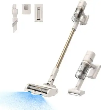Пылесос Dreame U20 — это удобное устройство в вертикальном формате с функцией 2-в-1. Он работает от съемного аккумулятора емкостью 2500 мА·ч, что обеспечивает длительный срок работы. Мощность всасывания составляет 120 Вт, а мощность двигателя — 370 Вт, что помогает быстро убирать пыль и грязь с различных поверхностей. В пылесосе есть подсветка рабочей зоны и дисплей, которые делают уборку более удобной. Он оснащен контейнером для пыли объемом 0,5 л и фильтром тонкой очистки для высокого качества уборки. В комплект входят насадки: щелевая, щетка для мебели и мини-электрощетка, что расширяет возможности использования. Устройство подходит для уборки шерсти животных благодаря специальному метку. В пылесосе отсутствует встроенная станция для хранения и дополнительных зарядок. Он легко управляется благодаря простым функциям и легкому весу. Такой пылесос идеально подойдет для быстрой и качественной чистки дома.