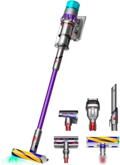 Пылесос Dyson Gen5detect Absolute — это вертикальное устройство, которое работает на аккумуляторе и легко справляется с разными видами уборки. Оно оснащено дисплеем и лазерной подсветкой пыли, что помогает лучше видеть загрязнения. Регулировку мощности можно настроить прямо на корпусе, а функция автоматической регулировки помогает экономить заряд аккумулятора. В комплект входят щетки для пола, мебели, мягкой мебели, а также щелевая насадка и мини-электрощетка для сложных участков. Пылесос использует фильтр тонкой очистки и НЕРА для удаления мельчайших частиц, что полезно для тех, кто заботится о чистоте воздуха. Съемный аккумулятор обеспечивает до 70 минут работы, а зарядка занимает около 270 минут. Благодаря легкому весу в 3.5 кг и компактным размерам, устройство удобно использовать и хранить. Также есть станция для хранения и зарядки, которая помогает держать пылесос всегда под рукой.