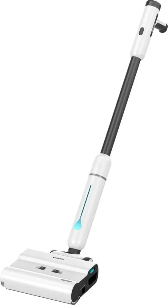 Пылесос Hiberg Stylle Q — это вертикальный моющий пылесос, который удобно держать в руке благодаря трубчатой конструкции и легкому весу всего 2,8 кг. Он работает от литий-ионного аккумулятора с емкостью 2000 мА·ч, обеспечивая до 60 минут работы без подзарядки. Пылесос оснащен фильтром тонкой очистки и системой автоматической регулировки мощности на ручке для удобства использования. Он умеет всасывать жидкости и оснащен подсветкой рабочей зоны, чтобы лучше видеть загрязнения. В комплекте есть щетка для мебели, щетка с ворсом и насадка-швабра для влажной уборки с вращающимся валиком. Объем пылесборника составляет 0,5 л, а резервуара для воды — 0,45 л, что подходит для коротких уборок. Устройство функционирует тихо — уровень шума всего 45 дБ, и его легко хранить благодаря станции для хранения. Благодаря дисплею пользователь контролирует работу пылесоса, а встроенная подсветка помогает убирать даже в темных уголках.
