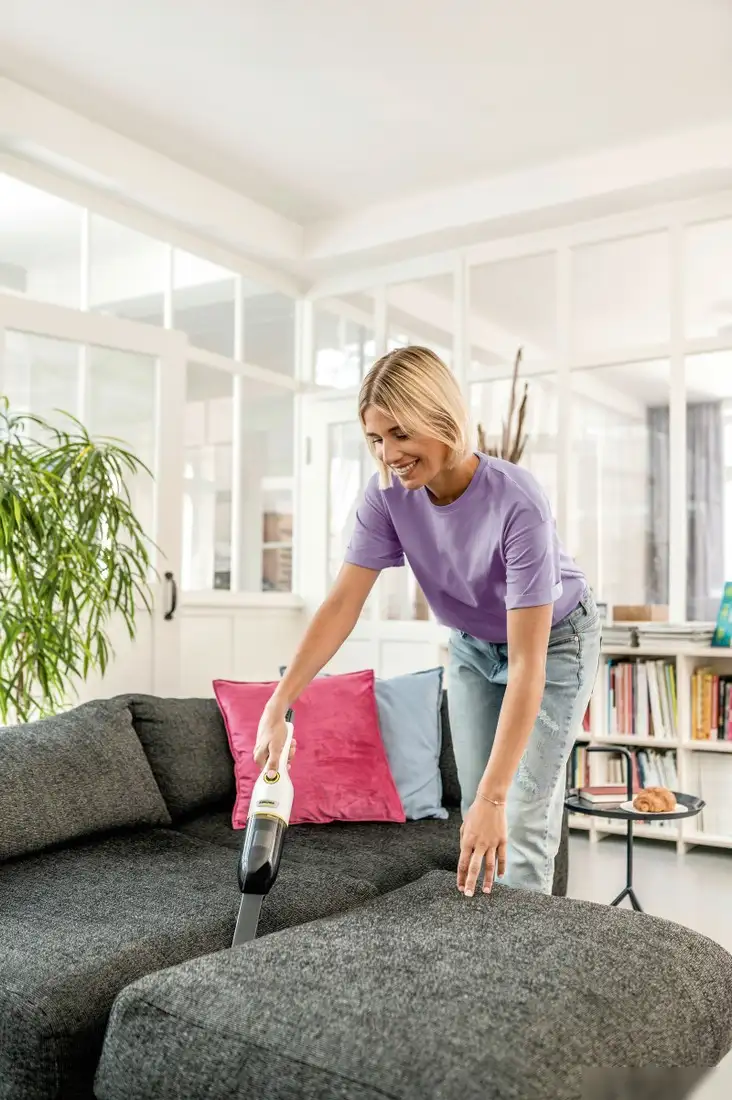 Пылесос Karcher CVH 2-4 1.198-450.0 — портативное устройство с аккумулятором Li-ion и мощностью 54 Вт. Он работает без проводов и легко очищает маленькие площади, накапливая пыль в контейнере объемом 0,15 л. Устройство не имеет регулировки мощности, но оснащено фильтром тонкой очистки, который помогает собирать мелкие частицы пыли. В комплект входит щелевая насадка и щетка для мебели, что делает уборку удобной и разносторонней. Пылесос работает до 10 минут при полной зарядке и требует 4 часа для восстановления энергии. Он легкий, весит всего 590 г, и имеет компактные размеры: 7,7×7,6×36 см. Уровень шума при работе составляет 75 дБ, что не мешает спокойной уборке. Благодаря автоматической регулировке мощности он подходит для очистки различных поверхностей. Этот пылесос отлично подходит для быстрой и удобной уборки небольших помещений или использования в труднодоступных местах.