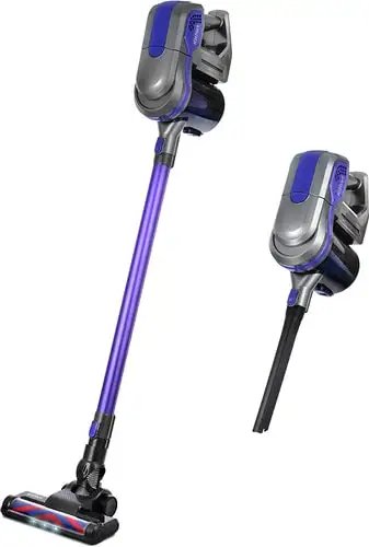 Пылесос Kitfort KT-5103 — это удобное устройство для уборки, которое можно использовать как в вертикальном, так и в 2-в-1 режиме. Он работает от аккумулятора с напряжением 22.2 В и обеспечивает до 30 минут работы на одном заряде. Корпус выполнен в серебристом и фиолетовом цвете, а вес составляет всего 2,7 кг, что делает его легким и удобным в использовании. Устройство оснащено контейнером для пыли объемом 0,45 л и системой тонкой очистки фильтра, что помогает обеспечить чистоту. Регулировка мощности осуществляется прямо на ручке, что позволяет удобно адаптировать работу под разные поверхности. В комплект входит щелевая насадка, щетка для мебели и турбощетка с подсветкой для более качественной уборки.