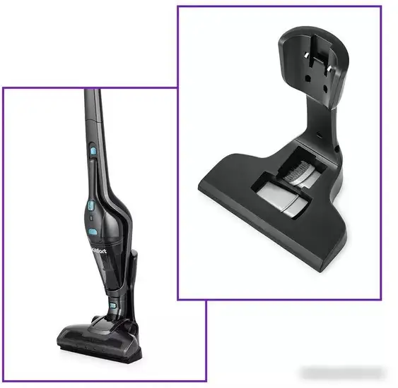 Пылесос Kitfort KT-5161-1 — это удобная вертикальная модель, которая работает на аккумуляторе. Он легко превращается в 2 в 1 и отлично подходит для уборки дома. Мощность у него составляет 120 Вт, а при этом он не слишком шумит — уровень звука 82 дБ. В пылесосе есть светлая подсветка рабочей зоны, которая помогает лучше видеть грязь, и фильтр EPA E12 для чистого воздуха. Он оснащён щетками для пола, мебели и щелевой насадкой для труднодоступных мест. Время работы без подзарядки — от 20 до 40 минут, а полностью аккумулятор заряжается за 3–4 часа. Благодаря небольшому весу и компактным размерам, его удобно хранить и использовать. Также в комплекте есть станция для хранения и зарядки, что делает его использование ещё удобнее.