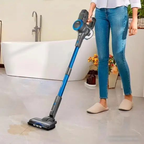 Пылесос Kitfort KT-5175-1 — это удобная модель, которая работает на аккумуляторе и помогает быстро убирать дома. Он вертикальный и легко превращается в 2-в-1 устройство, что делает его очень удобным. Модель оснащена контейнером для пыли объёмом 0,7 литра и фильтром для тонкой очистки воздуха. Работает на мощном двигателе 220 Вт и имеет регулировку мощности на корпусе для удобства. В комплект входят насадки для ковров, мебели, щелевая насадка и мини-турбощётка, что помогает очистить разные поверхности. Благодаря подсветке рабочей зоны убрать неровности или пыль в труднодоступных местах очень легко.