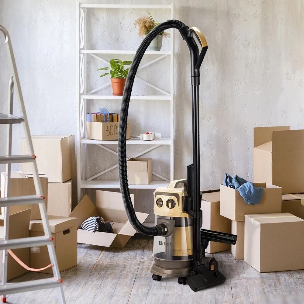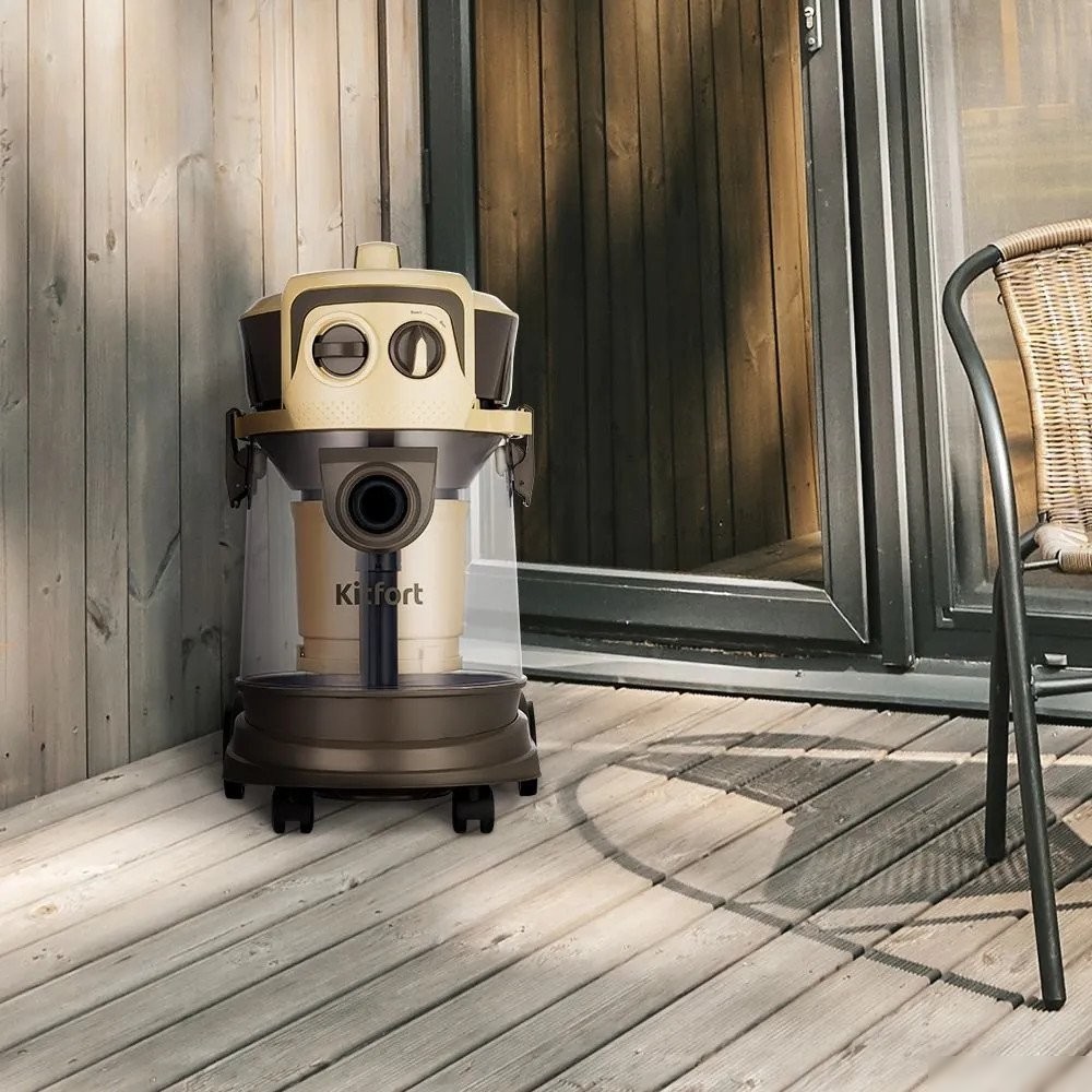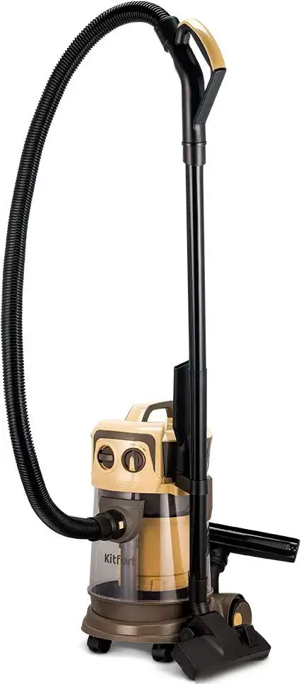 Пылесос Kitfort KT-5192 — классический пылесос с контейнером и мощностью 1000 Вт. Он собирает пыль и грязь в большой 15-литровый контейнер, что позволяет работать дольше без необходимости частой очистки. Корпус светло-бежевого с коричневыми вставками выполнен из прочных материалов и оснащён шестиметровым сетевым шнуром для удобного перемещения по комнате. Пылесос работает тихо, уровень шума составляет 87 дБ, что не мешает быть дома или в офисе. В комплект входят насадки для ковров, твердых покрытий, мебели и щелевая насадка, что расширяет возможности очистки. Благодаря фильтру тонкой очистки устройство ловит мелкую пыль и аллергены, улучшая качество воздуха. Труба состоит из нескольких частей и легко собирается для хранения или использования. Вес устройства — около 7 кг, его размеры позволяют легко его переносить и хранить. Эта модель подойдет для ежедневной уборки и ухода за разными поверхностями в доме или на работе.