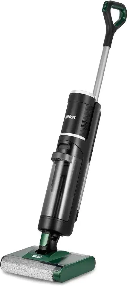Вертикальный моющий пылесос Kitfort KT-5259 отлично подойдет для очистки твердых полов и ковров. Он работает от аккумулятора с напряжением 21,6 В и обеспечивает до 30 минут работы без подзарядки. Модель оснащена контейнером для пыли объемом 0,8 л и резервуаром для воды на 0,65 л, что позволяет убирать без частой замены емкостей. На ручке есть регулировка мощности, что помогает выбрать оптимальный режим для разных поверхностей. В устройстве есть фильтр тонкой очистки EPA E12, который улучшает качество воздуха после уборки. Также пылесос умеет всасывать жидкие загрязнения и оснащен дисплеем для контроля работы. В комплект входит турбощетка и насадка-швабра — удобно для разных задач. Устройство легко хранится благодаря станции с самоочисткой и зарядкой. Его компактные размеры и вес 6,6 кг делают его удобным для хранения и перемещения.