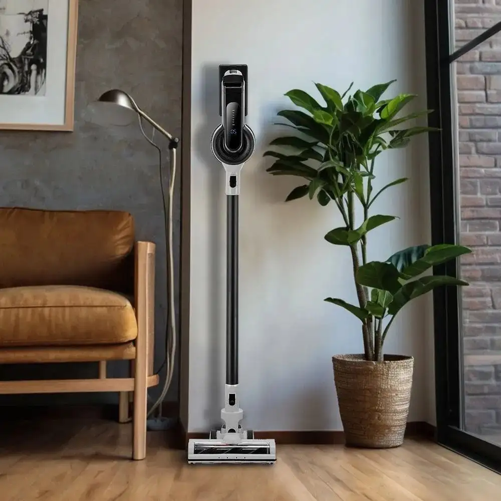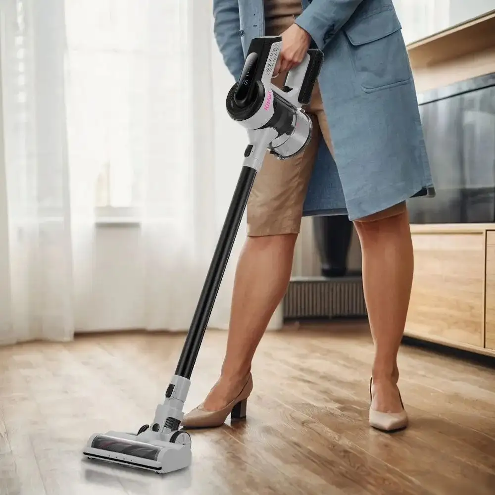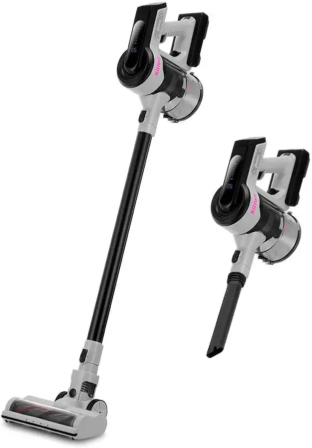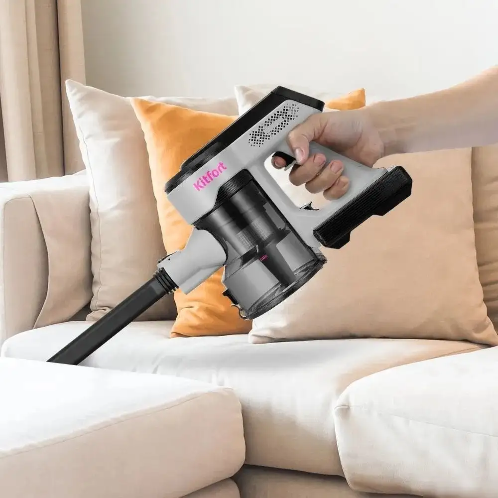 Пылесос Kitfort KT-5308 обладает вертикальной конструкцией и работает от аккумулятора типа Li-ion, что обеспечивает свободу движения без проводов. Он оснащен контейнером для мусора объемом 0.9 л и мощностью 250 Вт, что позволяет легко очищать разные поверхности. Устройство включает циклонический фильтр тонкой очистки, улучшающий качество уборки и фильтрацию воздуха. На ручке есть регулировка мощности, позволяющая адаптировать работу под различные задачи. В комплекте есть щетка для ковра и пола, щелевая насадка, щётка для мебели и турбощётка, что расширяет возможности уборки. Подсветка рабочей зоны помогает лучше видеть грязь даже в тёмных уголках. На дисплее отображается важная информация, а станция для хранения облегчает организацию аксессуаров. Устройство работает до 45 минут на одном заряде и заряжается примерно 5 часов. Оно легко управляется, удобно в использовании и подходит для сбора шерсти животных.