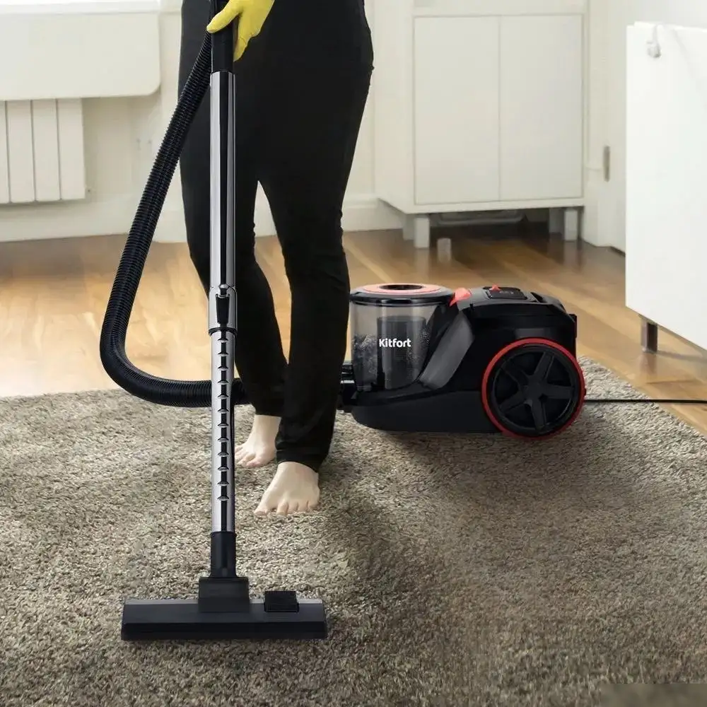 Пылесос Kitfort KT-5392 — это классический прибор с контейнером для сбора пыли и удобной телескопической трубой. Он предназначен для уборки дома и работает с мощностью 1400 Вт. Благодаря длинному сетевому шнуру длиной 5 метров, вы легко охватите большие площади без частых переключений. Регулировка мощности на корпусе позволяет выбрать оптимальный режим работы. Объем пылесборника составляет 3 литра, что уменьшает необходимость частой очистки. Уровень шума при работе составляет 80 дБ, а фильтр тонкой очистки помогает удерживать мелкую пыль. В комплект входит щетка для ковров и пола, щелевая насадка и щетка для мебели с ворсом. Пылесос легко перемещается благодаря небольшим габаритам — ширина 45,3 см, глубина 27,6 см, высота 25,4 см и вес 5,1 кг. Он также оснащён автоматическим сматыванием шнура для удобства хранения и легко подключается к сети напряжением 230 В.