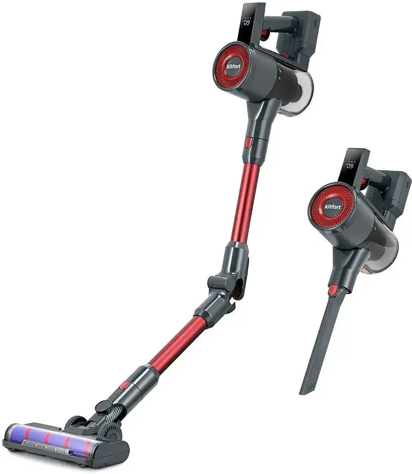 Пылесос Kitfort KT-5539 — вертикальный аккумуляторный прибор, который легко использовать дома. Он работает на мощной батарее с ёмкостью 2500 мА·ч, обеспечивающей до 45 минут работы без подзарядки. Пылесос активно очищает благодаря тонкому фильтру EPA E10 и функции подсветки рабочей зоны, что помогает заметить даже мелкий мусор. Он оснащён щётками для ковров, мягкой для мебели и щелевой насадкой для труднодоступных мест. Устройство легко управляется благодаря дисплею и регулировке мощности прямо на ручке. Вес всего 3,3 кг делает его удобным при переноске и использовании. В комплект входит съёмный аккумулятор, который можно заменить для длительной уборки. Размеры прибора компактные — он занимает мало места и легко хранится. Такой пылесос отлично подходит для уборки шерсти животных и быстрого приведения в порядок дома.