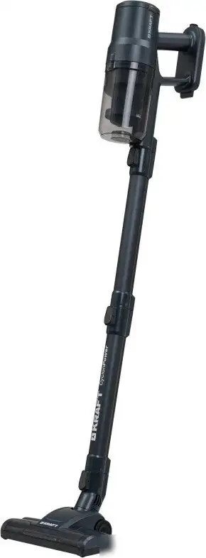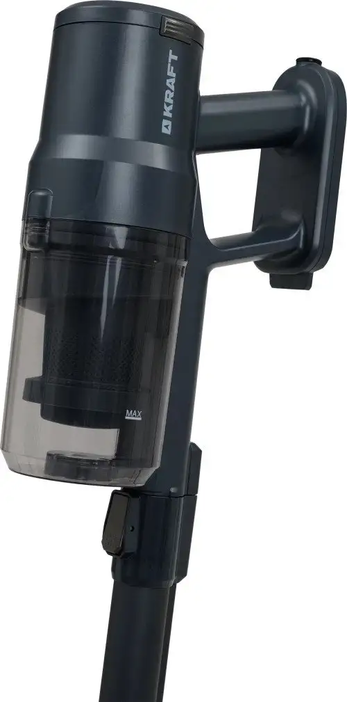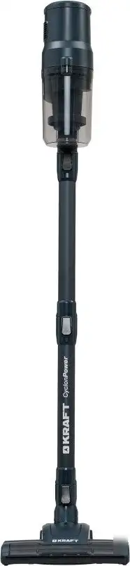 Пылесос Kraft KF-VVCL15 — это вертикальное устройство, которое удобно использовать дома. Он работает на аккумуляторе typu Li-ion и обеспечивает до 40 минут работы на одной зарядке. Мощность всасывания достигает 12 кПа, что помогает эффективно убирать пыль и шерсть животных. Пылесос оснащён контейнером для сбора пыли объёмом 0.6 литров и фильтром тонкой очистки с системой НЕРА, что обеспечивает чистоту воздуха. Регулировать мощность можно прямо на ручке, что удобно во время уборки. В комплект входят насадки для щелей и турбощётка для уборки шерсти на мебели и коврах. Устройство лёгкое — вес всего 2 кг, а размеры позволяют легко хранить его дома. Пылесос готов к использованию даже без наличия стационарной станции для хранения. Это компактное решение для быстрой и мобильной уборки на различных покрытиях.