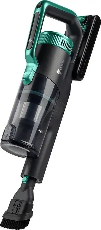 Пылесос Leonord LE-1406 — это вертикальное устройство, которое работает на аккумуляторе. Он оснащен мощностью 250 Вт и создает всасывание силами 21 кПа, чтобы легко убрать пыль и грязь с пола и мебели. Пылесос имеет вместительный контейнер объемом 0,5 л и фильтр тонкой очистки с функцией НЕРА, что помогает уловить мелкую пыль и аллергенные частицы. Регулировку мощности можно управлять прямо на ручке, чтобы адаптировать уборку под разные поверхности. В комплектацию входят щетка для ковров и пола, угловая насадка и щетка с ворсом для мебели, что расширяет возможности уборки. В пылесосе есть подсветка рабочей зоны, которая помогает убрать в темных местах. Он тихо работает с уровнем шума около 66 дБ, и полностью заряжается за 5 часов. Благодаря съемному аккумулятору емкостью 2200 мА·ч устройство работает до 40 минут без подзарядки, идеально подходя для длительных уборок. Это устройство удобно хранить благодаря специальной станции, а также оно предназначено для уборки шерсти животных.