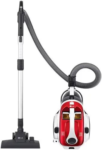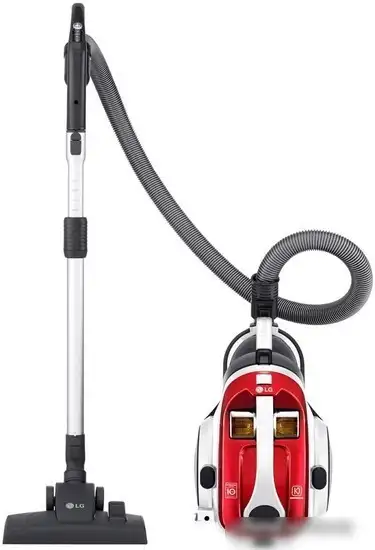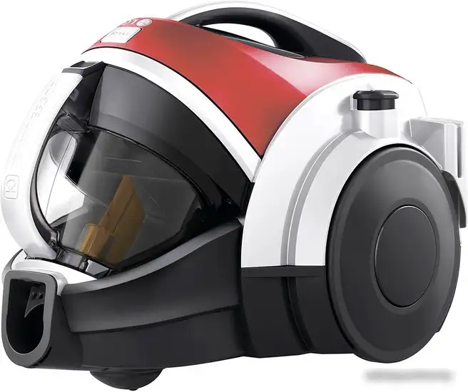 Пылесос LG VC73189NHTR — это классическая модель с контейнером для сбора пыли. У него мощность 1800 Вт и хорошая сила всасывания 380 Вт, что позволяет легко убирать дом. Корпус выполнен в бело-красных цветах, а телескопическая стальная труба и регулируемая мощность делают использование удобным. Радиус действия — 8 метров, длина шнура — 5 метров с автоматическим сматыванием. Объем пылесборника составляет 1,2 литра, а уровень шума — 78 дБ. Он оснащен фильтром HEPA H14, который хорошо задерживает пыль и аллергены. Также есть щетки для ковров, пола и мебели, что помогает убирать разные поверхности.