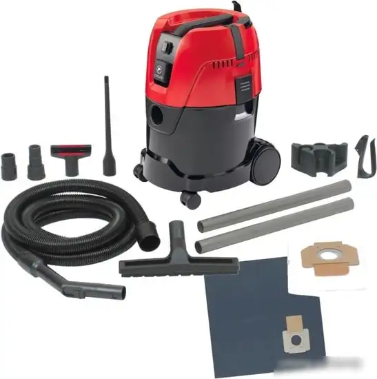 Пылесос Milwaukee AS 2-250 ELCP подходит для хозяйственных задач благодаря мощному двигателю мощностью 1000 Вт и объему пылесборника 25 литров. Он эффективно собирает сухой и жидкий мусор, что делает его универсальным помощником. Устройство работает с уровнем шума около 80 дБ, и его конструкция включает длину шнура 7.5 метров с автоматической укладкой для удобства использования. Фильтр тонкой очистки задерживает мельчайшие частицы пыли, а наличие функции выдува помогает быстро убрать мусор с поверхности. В пылесосе есть розетка для подключения электроинструмента мощностью до 2600 Вт, что упрощает работу с инструментами. Он легко перемещается благодаря мягким колесам, а мягкий корпус в красных и черных цветах выглядит аккуратно и удобно. В комплект входят насадки для пола, мебели и щелевая насадка, что расширяет возможности уборки.