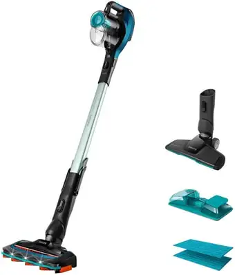 Этот вертикальный 2-в57-1 пылесос Philips FC6728/01 подходит для влажной и сухой уборки. Он оснащён контейнером для пыли объемом 0,4 л и встроенными насадками в корпусе, такими как щелевая и щетка для мебели. Регулятор мощности находится на ручке, что облегчает управление. Пылесос работает на аккумуляторе Li-ion с напряжением 21,6 В, и его время работы составляет от 22 до 50 минут, а зарядка занимает около 5 часов. Вес пылесоса чуть больше 2 кг, поэтому его удобно держать и перемещать. Модель работает достаточно тихо, уровень шума — 80 дБ. Этот пылесос идеально подходит для быстрого и простого уборки дома.