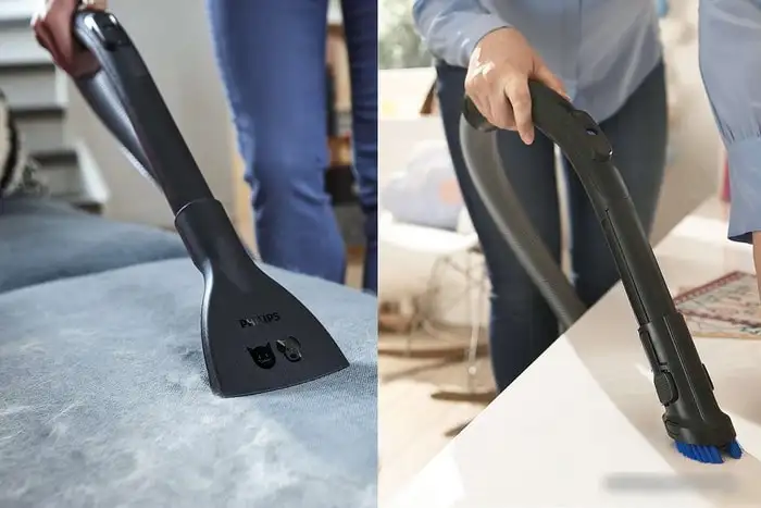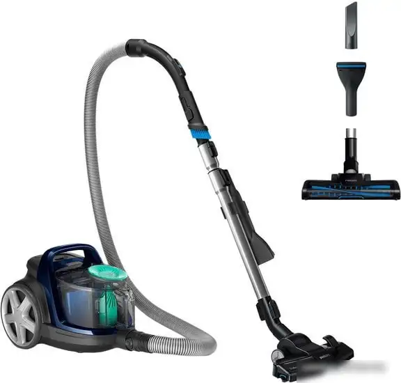 Пылесос Philips FC9573/01 имеет мощность 1900 Вт и мощное всасывание 410 Вт для эффективной уборки. Он оснащён контейнером на 1,5 л, что позволяет реже его чистить. Труба у устройства телескопическая, а радиус действия — 9 метров, что удобно для обработки больших помещений. Пылесос автоматически сматывает шнур, а на корпусе есть регулировка мощности, что помогает настроить работу под различные покрытия. В комплект входят насадки для ковров, пола, мебели и щелевая насадка для труднодоступных мест. Мягкие колёса защищают напольное покрытие при движении. Фильтр тонкой очистки удерживает пыль и аллергенные частицы, улучшая качество воздуха. Уровень шума составляет 82 дБ, устройство компактное и весит всего 5 кг.