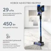 вертикальный 2-в-1, аккумулятор, потребление: 450 Вт, регулировка мощности, турбощетка, шум 80 дБ