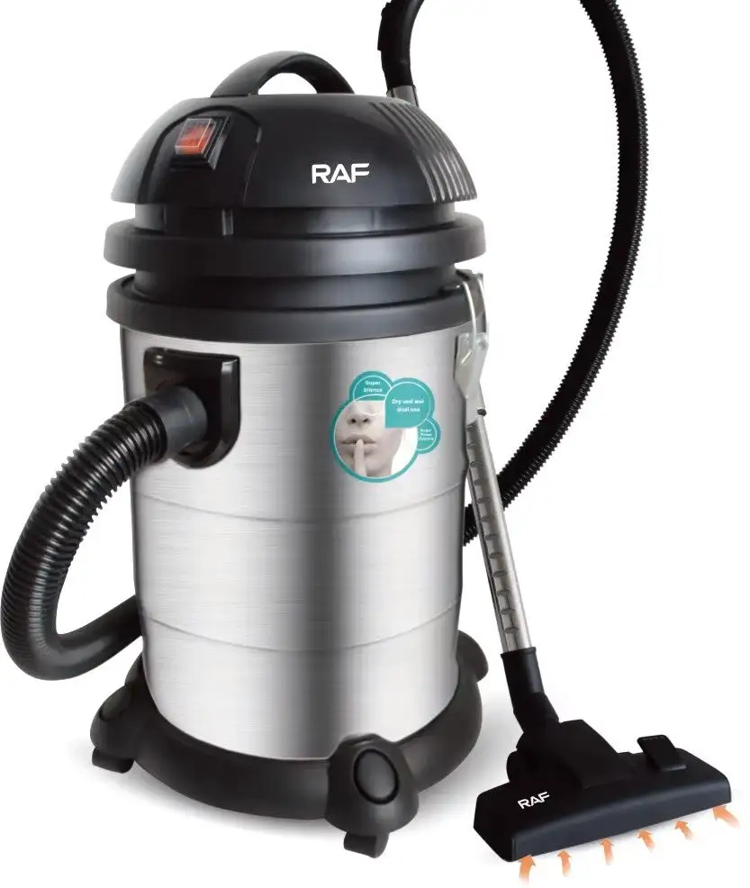 Пылесос RAF R.8706 предназначен для уборки строительных и домашних помещений. Он оснащён мощностью 3000 Вт и большим 30-литровым пылесборником, что позволяет очищать большие площади без частой очистки контейнера. Телескопическая трубка обеспечивает удобную регулировку длины для комфортной работы. В комплект входят насадки для пола, ковра, мебели и щелевая — идеально подходит для разнообразных задач. Модель работает тихо — уровень шума составляет 80 дБ, а фильтр тонкой очистки помогает собирать мелкую пыль и аллергенные частицы. Длина сетевого шнура 4.2 м обеспечивает свободу движений во время уборки. Вес устройства — всего 4 кг, что облегчает его перемещение. Кнопки регулировки мощности и автоматического сматывания шнура отсутствуют, но есть всё необходимое для эффективной очистки.