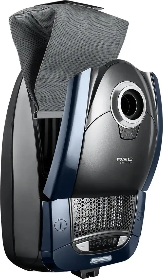 Пылесос RED Solution B350 — классический модель с мешком объемом 1,5 литра, которая легко справляется с уборкой. Он работает мощностью 2000 Вт и создает сильное всасывание в 30 кПа, позволяет быстро и эффективно убирать пыль и загрязнения. Корпус выполнен в сером и синем цветах и имеет телескопическую трубку для удобства использования. Пылесос оборудован автоматическим сматыванием шнура и регулируемой мощностью на корпусе, что делает уборку более комфортной. Внутри корпуса хранятся насадки для пола, мебели и щелевая насадка, чтобы убрать даже труднодоступные места. Он оснащен фильтром тонкой очистки и НЕРА-фильтром, что помогает лучше задерживать пыль и аллергенные частицы. Уровень шума составляет 82 дБ, что остается приемлемым для бытового использования. Модель работает от сети 230 В и работает без ультрафиолетовой лампы.