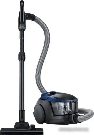Пылесос Samsung VC18M3120VB/EV — это устройство с мощностью 1800 Вт, которое легко справляется с уборкой в доме. Он оснащен контейнером объёмом 2 литра и системой тонкой очистки фильтра EPA E11, что помогает сохранить воздух чистым. Длина сетевого шнура 6 метров обеспечивает большой радиус действия — до 9 метров, а автоматическое сматывание шнура делает использование удобнее. Трубка сделана из прочной стали, а регулировка мощности позволяет подобрать оптимальный режим работы. В комплект входят насадки для ковра, пола, мебели и щелевая насадка, которые помогут убрать любые поверхности. Этот пылесос обладает тихой работой и простым управлением благодаря кнопкам на корпусе.