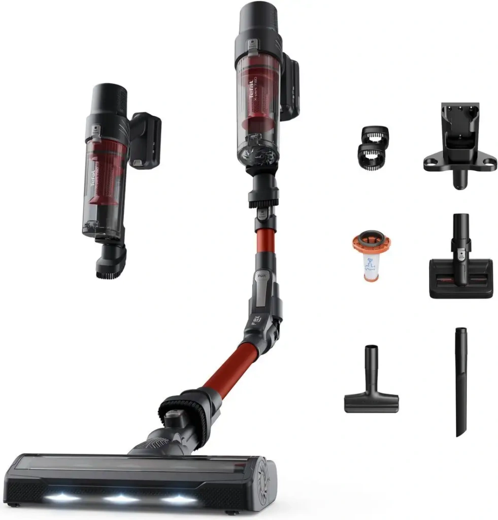 Пылесос Tefal TY6A83WO – это вертикальное устройство, которое работает на аккумуляторе с литий-ионной батареей и обеспечивает до 45 минут работы без подзарядки. Его мощность составляет 140 Вт, а регулировка уровня мощности находится на ручке, что позволяет удобно управлять процессом уборки. В пылесосе есть подсветка рабочей зоны, которая помогает лучше заметить пыль и мусор, особенно в темных углах. В комплект входят щелевая насадка, щетка для мебели, турбощетка и мини-электрощетка, что делает его универсальным для разных поверхностей и задач. Объем пылесборника составляет 0,44 литра, а фильтр тонкой очистки (НЕРА) предотвращает распространение пыли в воздух. Для хранения есть станция с зарядкой, обеспечивающая удобство и порядок после использования. Вес устройства всего 2 кг, его легко маневрировать и использовать продолжительное время. Этот пылесос особенно подходит для уборки шерсти животных и для быстрой ежедневной чистки.