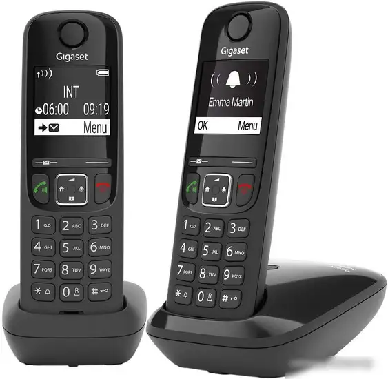 Радиотелефон Gigaset AS690 DUO в черном цвете легко подключается к телефонной линии и может работать с двумя трубками одновременно. Он снабжен базой и двумя трубками, что позволяет пользоваться несколькими номерами и находиться в разных комнатах. Телефон имеет встроенную телефонную книгу на 100 номеров и функцию пейджинга для поиска трубки. На дисплее отображается информация благодаря подсветке, а звуковые сигналы обеспечивают уведомления о вызовах. Встроенный будильник помогает не пропустить важные дела. Громкая связь и конференц-звонки улучшают общение с несколькими собеседниками. Телефон работает до 14 часов без перерыва и ожидает около недели. В комплекте есть все необходимые элементы для удобного пользования. Благодаря своей простой конструкции и хорошему покрытию, он подходит для использования как дома, так и на небольшом офисе.